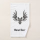 Águila de dos cabezas, símbolo de poder de emperadores bizantinos. Color de fondo personalizado. Texto personalizado en cada toalla.