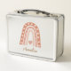 Esta es una bonita caja de almuerzo personalizada con arcoíris boho con corazones diseñados en terracota y tonos tranquilizantes de la tierra