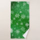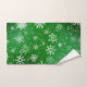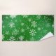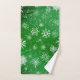 Copos de nieve blancos y nieve en un fondo de verde esmeralda.