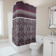 Presenta una elegancia completamente sofisticada en tu cuarto de baño con esta llamativa cortina de ducha. Un patrón geométrico intrincado y repitiendo en ciruela rica y diferentes tonos de gris domina la parte inferior, bellamente contrastada por bandas horizontales audaces de ciruela profunda, gris y una banda magenta vibrante en la parte superior. Este diseño moderno desprende una sensación de elegancia e intriga visual.