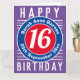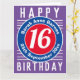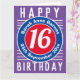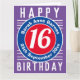 Tarjeta de cumpleaños número 16. Colores brillantes y diseño audaz. Tarjeta de cumpleaños numerada. 16 años.