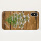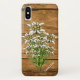 Proteja su iPhone X, en este rústico funda de aspecto de madera antigua, con gráficos de las flores alpinas Edelweiss. Personalice el texto blanco, en la parte inferior, para usted o como una gran idea de regalo.