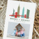 ¡Llamada a todos los amantes de la ciudad de Nueva York! Este diseño elegante y minimalista presenta cinco lugares emblemáticos del horizonte de la ciudad de Nueva York: la Estatua de la Libertad, el edificio Chrysler, el Empire State Building, el edificio Flatiron y el puente de Brooklyn. Hace una declaración elegante y única para sus tarjetas de Navidad.