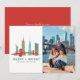 ¡Llamada a todos los amantes de la ciudad de Nueva York! Este diseño elegante y minimalista presenta cinco lugares emblemáticos del horizonte de la ciudad de Nueva York: la Estatua de la Libertad, el edificio Chrysler, el Empire State Building, el edificio Flatiron y el puente de Brooklyn. Es una declaración elegante y única para sus tarjetas de Navidad.