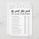 Compra este juego editable y disfruta de alta calidad Dijo, dijo tarjeta para tu evento! Adivina quién lo dijo? ¿Novia o Groom? Esta es una plantilla de juego, ¡Puedes cambiar las preguntas como quieras! Diseño de confeti plateado.