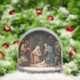 This beautiful snow globe features the nativity scene on one side and the editable year against a starry night on the back.