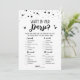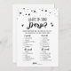 Compra este juego editable y disfruta de alta calidad ¿Qué hay en tu bolso para tu evento? Esta es una plantilla de juego, ¡Puedes cambiar las preguntas como quieras! Compruebe su teléfono para ver los elementos de esta lista. ¡La persona con más puntos gana! ¡Actividades de ducha de novia! Diseño en blanco y negro.