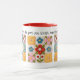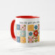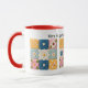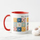 Taza única y colorida con estampado de edredón a cuadros que encantará a las costureras y artistas de la costura. Impreso con imágenes de bloques de edredón a cuadros y flores bordadas con detalles realistas. Un texto que dice "Cuando la vida te da retazos, haz un edredón" se puede editar a otro texto en el editor fácil de Zazzle si se desea. Personalízalo aún más con tus selecciones de estilo, tamaño y color favoritos.