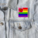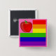 Botón cuadrado con una manzana de la bandera y del profesor del arco iris