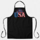 Este es un delantal negro con las letras "USA" (en un diseño de estrellas y rayas) y fuegos artificiales a lo largo del vestíbulo. ¡El fondo negro realmente hace el diseño pop! Este sería un gran delantal para tu barbacoa del 4 de julio o el Día del Trabajo. Espero que te guste y gracias por visitar mi tienda.