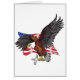 Dibujo original de Sandra Gale de un águila calva norteamericana sosteniendo una cruz religiosa en sus garras con una bandera norteamericana ondeando en el fondo. Dibujado a mano con lápices de colores y personalizable completo. Añade tu propio texto para decir lo que quieras o añadir color al fondo. Hacerlo su propio diseño patriótico original.