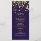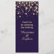 Efecto dorado en la tarjeta de rack del menú Boda de fondo violeta.
