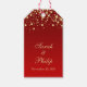 Efecto dorado confetti en el fondo rojo Boda Gracias etiqueta Gift