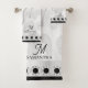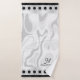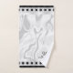 Una toalla única de bonito elegante de mármol negro, blanco, plateado y gris. Personalizar el guión Monograma y nombre.