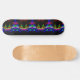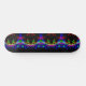 Tabla con fondo negro y efectos psicodélicos aleatorios en azul lima rosa rojo. Esta tabla de monopatín es única y colorida. A los jóvenes les encantará este diseño.