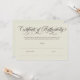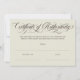 Elegante certificado de autenticidad en bergshell y marrón con un guión de caligrafía rápida.
