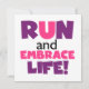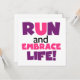 Si te gusta correr, correr 5 Ks, 10 Ks, media maratón o maratones, te encantará este colorido diseño de texto en morado y rosa que dice Correr y abrazar la vida! ¡Corre y abraza camisetas vitales, tazas, bolsas, tarjetas, pegatinas, cadenas de llaves, mousepads, estuches para iPhone, imanes y mucho más!