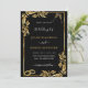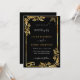 Colores y Fuentes Personalizados - Diseña tu propia plantilla de Invitación de Boda Personalizada con Marco Floral Dorado con Anillos de Boda y Copas de Brindis de Champagne Ejemplo de Invitaciones de Boda Negras y Doradas con Código QR - por MIGNED - Crea tu Invitación de Boda Única - Redimensiona y mueve elementos con la herramienta de Personalización. ¡Añade tu Código QR - Imagen - Foto / y Texto / Nombre / Información o Texto Personalizado - Elige / Añade tus Colores de Fondo y Texto favoritos / Fuentes / Tamaño! Felicitaciones a los recién casados :)