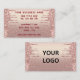 Fuentes personalizadas / Tamaño y color: cree sus propias tarjetas de presentación promocionales personalizadas ejemplo con moderno brillo de rosa dorado con gotas brillantes con el logotipo de su empresa o foto y nombre información de contacto o texto personalizado plantilla de tarjeta de presentación profesional de marca / Materiales de marketing: agregue su logotipo, imagen, foto o código QR / y texto / información / más: ¡haga su tarjeta de presentación única / productos promocionales! Cambie el tamaño y mueva o elimine y agregue texto / elementos con la herramienta de personalización. Diseño por MIGNED. Por favor, revise mis otros proyectos. También puede transferir estos diseños a más de 1000 productos de Zazzle.