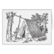 Bosquejo del vintage de la tienda de lona básica soportada por la secuencia de la cuerda entre dos árboles