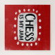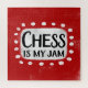 "El ajedrez es mi mermelada" es un divertido diseño de texto con una forma de acento blanco rodeado de puntos de textura caprichosos.