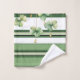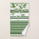 Cute trébol irlandés cuelga de la parte superior de este juego de toallas de baño a rayas que puedes personalizar para el Día de San Patricio y todas las vacaciones irlandesas. Hay rayas verdes en todo el juego de toallas verdes.
