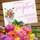 ¡El amor está en flor! Colección de bodas floridos y vibrantes, con un ramo en un jarrón de mármol rodeado de mariposas, y acompañada de una tipografía de escritura fuchsia.