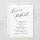 Si sus planes bodas han cambiado inevitablemente, esta tarjeta simple y elegante podría ser la opción perfecta para usted. Con un lujoso tipo de letra caligráfica, el encabezado dice "El amor es paciente". Todo lo demás es versátil y se puede editar: cambia el tipo de letra o fondo de soporte a cualquier color que desee. Utilice los campos de plantilla para agregar sus datos personales. // 137 //