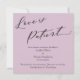 Si sus planes bodas han cambiado inevitablemente, esta tarjeta simple y elegante podría ser la opción perfecta para usted. Con un lujoso tipo de letra caligráfica, el encabezado dice "El amor es paciente". Todo lo demás es versátil y se puede editar: cambia el tipo de letra o fondo de soporte a cualquier color que desee. Utilice los campos de plantilla para agregar sus datos personales. // 137 //