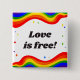 Usa tu orgullo dondequiera que vayas con el **"El amor es libre: botón del orgullo arcoiris".** Presentando los arcos en la parte superior e inferior y la audaz declaración "¡El amor es libre!" en llamativas letras negras, este botón es un accesorio perfecto para mostrar tu apoyo al amor, igualdad y la comunidad LGBTQ+. ¡Píntalo en tu chaqueta, bolsa o gorra y haz saber al mundo que el amor no conoce límites!