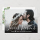Tarjeta de foto con fecha de "no guardar" con eucalipto verde con foto horizontal completa. Plantilla de anuncio de evento pospuesto - tarjeta simple y rústica de cambio de fecha con foto. Cuenta con hojas de eucalipto verdes, un diseño elegante de tipografía manuscrita con el texto "El amor es paciente" y una foto horizontal que puedes cambiar fácilmente. #3339 Si necesitas ayuda o artículos coincidentes, por favor contáctame.