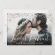Plantilla de anuncio de evento pospuesto - tarjeta de cambio de fecha con foto. Tarjeta moderna de "Unsave the Date" con foto horizontal completa. Presenta un diseño elegante de tipografía manuscrita con el texto "El amor es paciente" y una foto horizontal que puedes cambiar fácilmente, en la parte superior con superposición de confeti brillante. En el reverso, fondo de metal cepillado rosa dorado glamuroso, con superposición de confeti brillante rosa dorado y plantilla de texto con forma de corazón pequeño, que puedes personalizar con el tuyo. #3339 Si necesitas ayuda o artículos coincidentes, por favor contáctame.