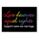 Un diseño a favor de los derechos de matrimonio gay, el texto de color arcoiris dice "el amor merece iguales derechos, apoya el matrimonio entre personas del mismo sexo".