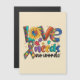 Comparte compasión y apoyo con esta tarjeta de saludo de reconocimiento del autismo "Love Needs No Words", que presenta un girasol vibrante, corazón y piezas de rompecabezas coloridas. Perfecto para las madres, profesores, defensores y cualquiera que celebre la aceptación del autismo.