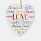 Este ornamento hermoso describe todas las palabras maravillosas del AMOR. Personalice con sus nombres en la parte posterior. Usted puede también presionar el personalizar él botón y cambiar palabras unas de los o fuentes en el ornamento.