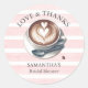 "Amor y Gracias" Pegatinas de ducha de novia - Elegante y Personalizable Añade un toque encantador a tu evento con estos pegatinas de ducha de novias, que incluyen una taza de café muy bien ilustrada y el amor y las gracias de corazón sobre un fondo acuático a rayas en tonos rosas. Perfecto para sellar bolsos de favores, regalos o cajas de regalo, estos pegatinas de taza de café le aportan calidez y personalidad a su celebración. Diseñadas como parte de una elegante colección de papel para duchas de novias, estas etiquetas de ducha de personalizado están totalmente personalizadas con sus nombres y detalles de eventos. La decoración de la ducha con colchón acuática aporta un toque de belleza asada, lo que convierte a estos pegatinas en un lugar ideal para el espresso. ¿Buscando elementos coincidentes? Explora la colección completa de Pink Love Is Brewing Coffee Bridal Shower Collection aquí: https://www.zazzle.com/collections/pink_coffee_bridal_shower_theme-119853640059179080 Si no ves lo que estás buscando, envíame un mensaje. ¡Siempre estoy feliz de ayudar! Diseñado por Victoria Grigaliunas. ¿Estás buscando más ideas sobre el tema de la ducha de novia? Diga ‘El amor está preparando ducha de novias, dile a una bella’ para encontrarnos en línea.