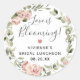 Las rosas rosadas turbias que se colocan en un follaje verde crean una hermosa corona floral. El amor es el florecimiento está escrito en un gran tipo de letra de guión. El nombre de la novia, Bridal Luncheon y la fecha siguen en un simple texto moderno. Este sello para sobres de ducha de novia forma parte de la colección Dusty Pink Rose Bridal Shower. Contiene muchas plantillas DIY que permiten crear rápidamente invitaciones y suministros de fiesta. Debería ver un enlace a la colección en esta página.
