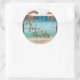 Un hermoso pegatina de agradecimiento con un diseño de playa tropical, con palmeras y luces de cuerda con letras de pincel "amor y gracias". Fácil de cambiar o borrar el campo de texto disponible para satisfacer sus necesidades personales. Perfecto para bodas de verano/exóticas/playa y duchas. Visita mi tienda para encontrar artículos coincidentes en esta colección.