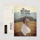 Comparte las alegres noticias de tu fuga a la montaña con amigos y familiares a través de nuestra postal rústica y de inspiración vintage. Con tu foto favorita del día de la boda en la parte delantera y un mensaje colocado contra un encantador fondo desgastado en el reverso, este diseño captura hermosamente el espíritu de tu íntima celebración. El reverso ofrece amplio espacio para invitar a seres queridos a una celebración local, completo con detalles adicionales y toques personales. Haz saber a todos que atendiste el llamado de las montañas y emprendiste una aventura romántica, ahora listo para celebrar con aquellos que más importan.