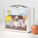 La caja de almuerzo Metalizado Arca de Noé. Este diseño presenta animales digitales y gráficos de acuarela. Puede personalizar este diseño con el nombre de su hijo.