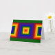 Muestre su amor del color con la alternancia de los arco iris geométricos. Una serie de rojo, de anaranjado, de amarillo, de verde, de azul, añil, y cuadrados violetas irradia hacia fuera del centro de este diseño festivo. A cada lado de la plaza principal son las mitades de 2 cuadrados del arco iris con los colores ordenados en orden inverso.