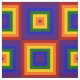 Cree la decoración de algunos niños frescos, celebre el orgullo de LGBTQ, o muestre su amor del espectro con la alternancia de los arco iris geométricos materiales. La tela moderna festiva ofrece una serie de rojo, de anaranjado, de amarillo, de verde, de azul, el añil, y los cuadrados violetas que irradian hacia fuera del centro en este diseño colorido. Las secuencias cuadradas al lado de él están alineadas con el arco iris los colores ordenados en orden inverso.
