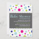 Esta invitación neutral de Baby Shower del género ofrece puntos en una paleta de colores moderna.