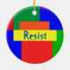 Aquí está un ornamento colorido que ofrece un diseño del edredón de remiendo en colores del arco iris con una mirada texturizada. Personalice o quite fácilmente el texto.