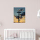 El Poster de Arte Cristiano Risen King Easter Sunset fotografiado por el artista Rick Short. La cruz vacía no es una señal de que Jesús muriera, sino de que murió por los pecados de toda la humanidad y surgió de los muertos, tres días después, tal como Él dijo que lo haría. "No está aquí, porque está levantado, como dijo. Ven, mira el lugar donde está el Señor" - Mateo 28:6