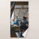 Johannes Vermeer (octubre 1632 - diciembre 1675), en el original holandés Jan Vermeer van Delft, era un pintor neerlandés del periodo barroco que se especializaba en escenas internas de la vida de clase media. Durante su vida, fue un pintor provincial de género moderadamente exitoso, reconocido en Delft y La Haya. Sin embargo, produjo relativamente pocos cuadros y evidentemente no era rico, lo que dejó a su esposa e hijos endeudados a su muerte. Vermeer trabajó lentamente y con gran cuidado, y frecuentemente usó pigmentos muy caros. Es particularmente conocido por su trato magistral y el uso de la luz en su trabajo. "Casi todas sus pinturas", escribió Hans Koningsberger, "aparentemente se encuentran en dos pequeñas habitaciones en su casa en Delft; muestran el mismo mobiliario y decoración en varios arreglos y a menudo retratan a las mismas personas, en su mayoría mujeres". Su modesta celebridad cedió paso a la oscuridad después de su muerte. Apenas se le mencionó en el principal libro de fuentes de Arnold Houbraken sobre la pintura holandesa del siglo XVII (Gran Teatro de Pintores Holandeses y Artistas Mujeres) y por lo tanto se le omitió en posteriores encuestas sobre arte holandés durante casi dos siglos. En el siglo XIX, Vermeer fue redescubierto por Gustav Friedrich Waagen y Théophile Thoré-Bürger, que publicaron un ensayo en el que se le atribuían 66 fotografías, aunque hoy en día sólo se le atribuyen 34 pinturas. Desde entonces, la reputación de Vermeer ha crecido, y ahora es reconocido como uno de los mayores pintores de la Edad de Oro holandesa. Cita:Wikipedia