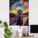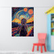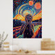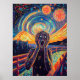 Una reimaginación de The Scream empapada en el neón, donde la intensidad de la emoción se encuentra con el electrizante mundo del ciberpunk y la estética de las ondas sintéticas. El azul intenso del neón, los naranjas eléctricos y los vibrantes movimientos cósmicos transforman este clásico en una obra maestra futurista y de alta energía. La fusión del surrealismo y el retro-futurismo digital hace de esta obra una declaración audaz para los amantes del ciberpunk, el neón y las pinturas icónicas reimaginadas con un giro moderno.