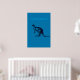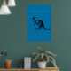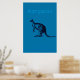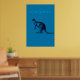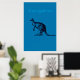 El arte moderno de la muralla azul canguro con la imagen de un canguro en negro contra un fondo colorido con la palabra "canguro". La decoración de los salones es muy moderna.