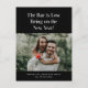Una audaz foto humorística única con tarjeta de Año Nuevo para los que están listos para cantar en el nuevo año después de un loco año deslucido. El Bar es Bajo. Traigan el Año Nuevo.