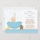 Asperje a la mamá para estar con este bebé adorable asperjan la invitación para un muchacho. Este azul asperja características de la invitación un bebé lindo en un paraguas con gotas de agua y un oso de peluche. Algunos elementos JDDigiDesign